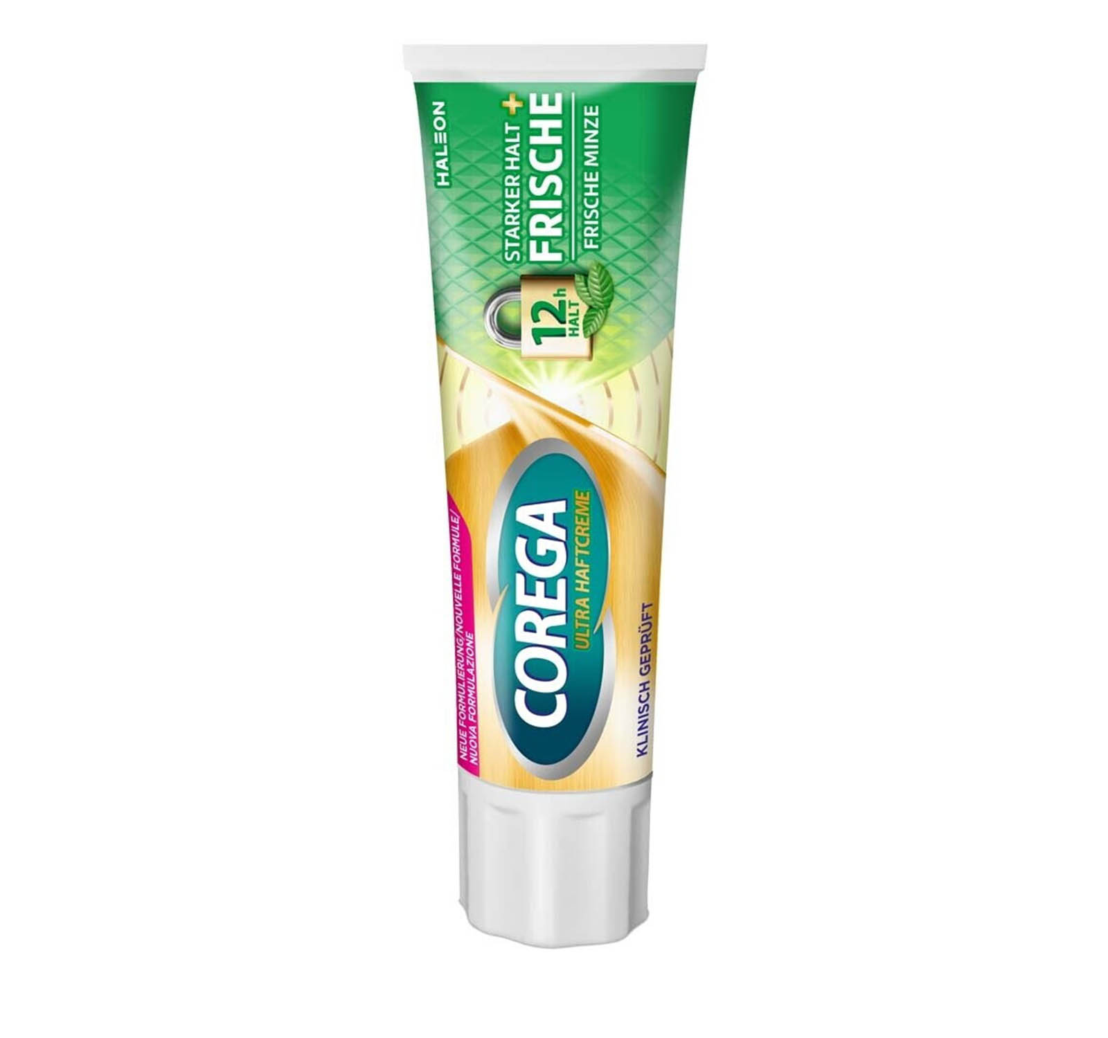 Супер силен фиксиращ крем за зъбни протези със свеж и приятен ментов привкус. Ефективно уплътнява пространвството между зъбната протеза и венеца осигурявайки силна фиксация на протезата през целия ден. Предпазва от попадане и задържане на парченца храна под протезата. Тубичката на крема е снабдена със специален накрайник, който позволява по-лесно и удобно нанасяне на необходимото количество около ръбовете на протезата за сигурно и равномерно фиксиране.